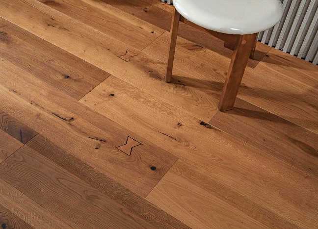 Wide Plank Flooring kombiniert eine Premium French Oak Oberfläche mit einem robusten 3-lagigen Kern. Mit einer langlebigen Löge-/Öloberfläche und einem präzisen Klicksperrsystem sorgt es für eine einfache, stabile Installation. Es ist ENF zertifiziert und Fußbodenheizung kompatibel.