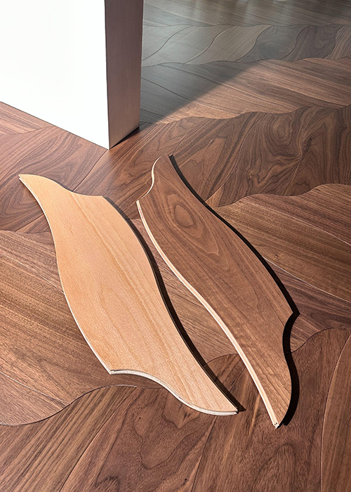Custom molds and artisan craftsmanship for high-end, artistic wood floors.